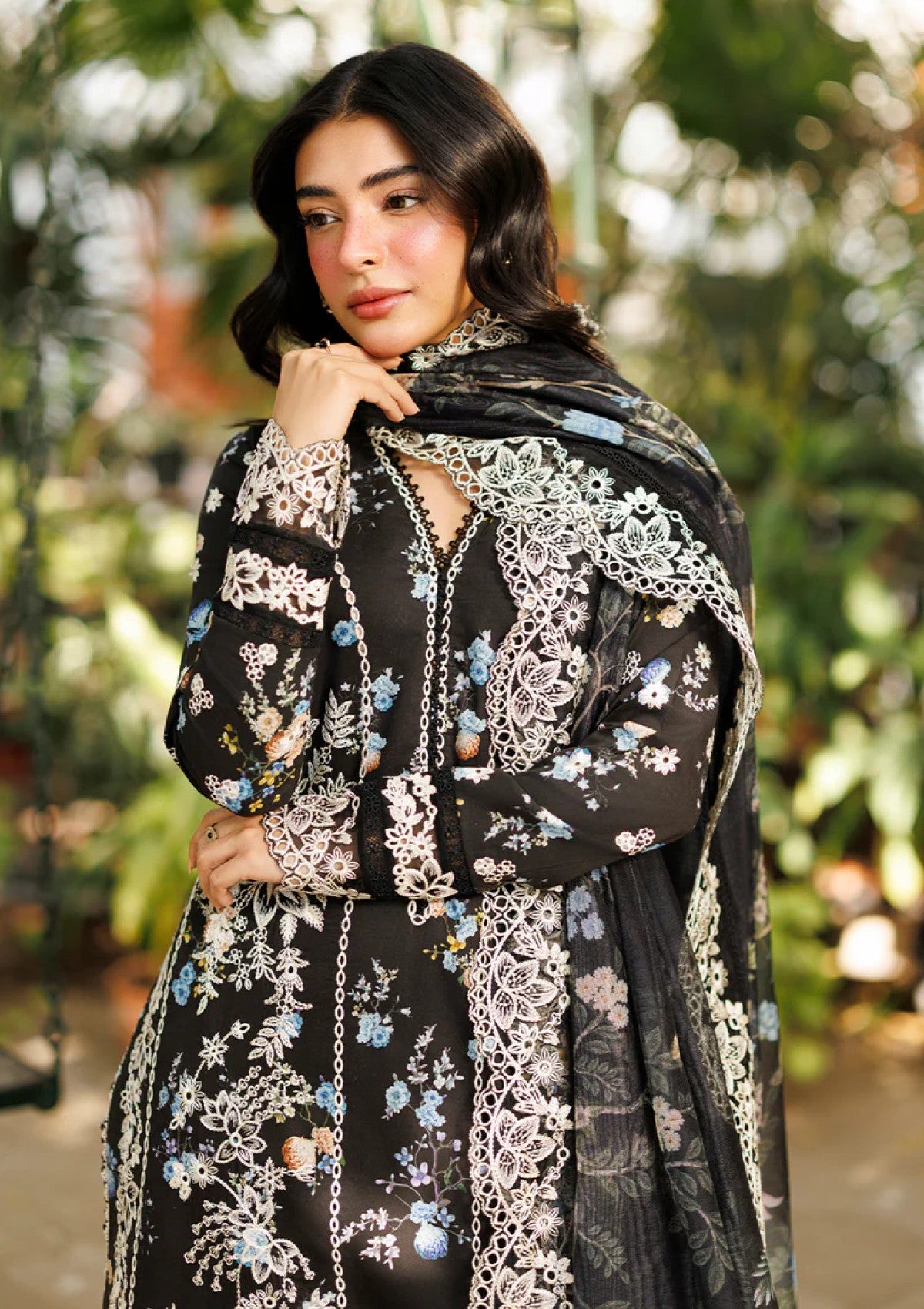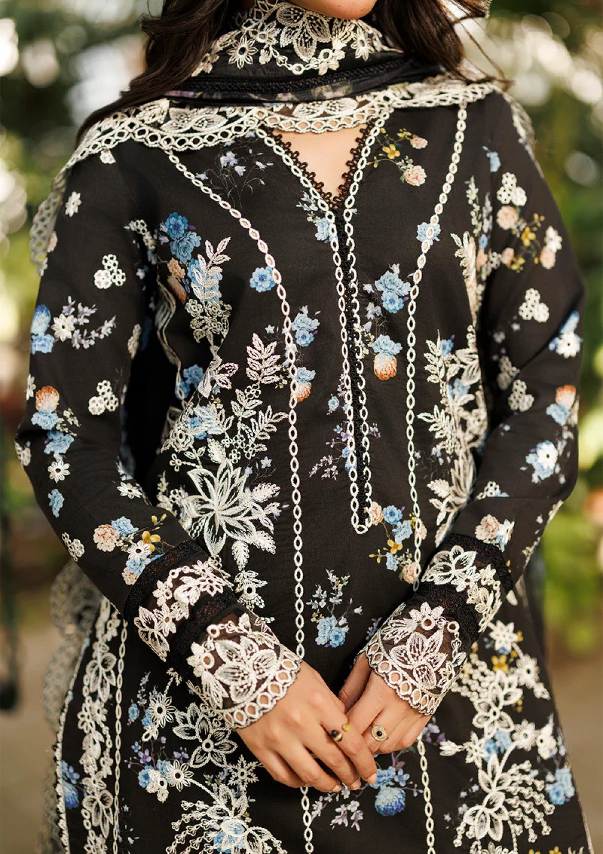 PRINTED LAWN BLACK DIGITAL PRINTED EMBROIDERED BACK 0.98 M
