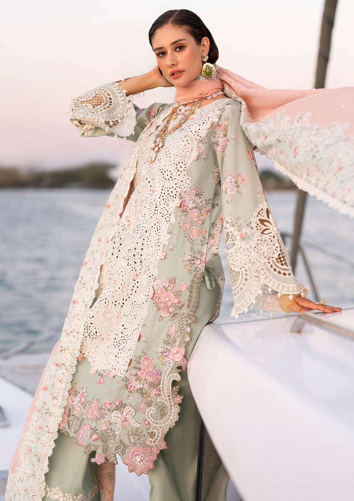 - Embroidered lawn front