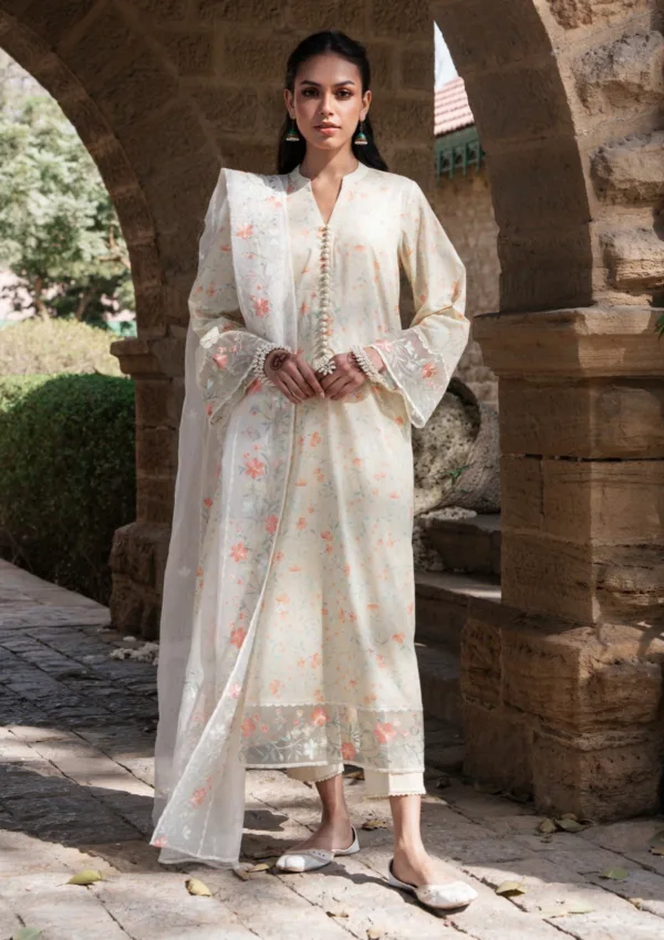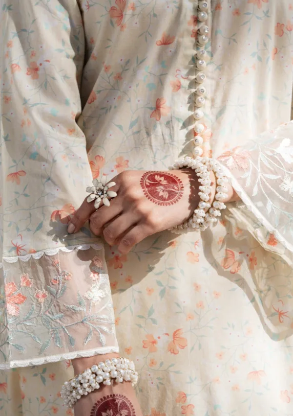 This LIME DEW-3 PC PRINTED LAWN SUIT features a beautifully printed lawn shirt complemented by an 80″ embroidered patti for added design and sophistication. The cambric dyed trouser and net embroidered dupatta complete the look, making this suit a must-have for any fashion-forward individual.