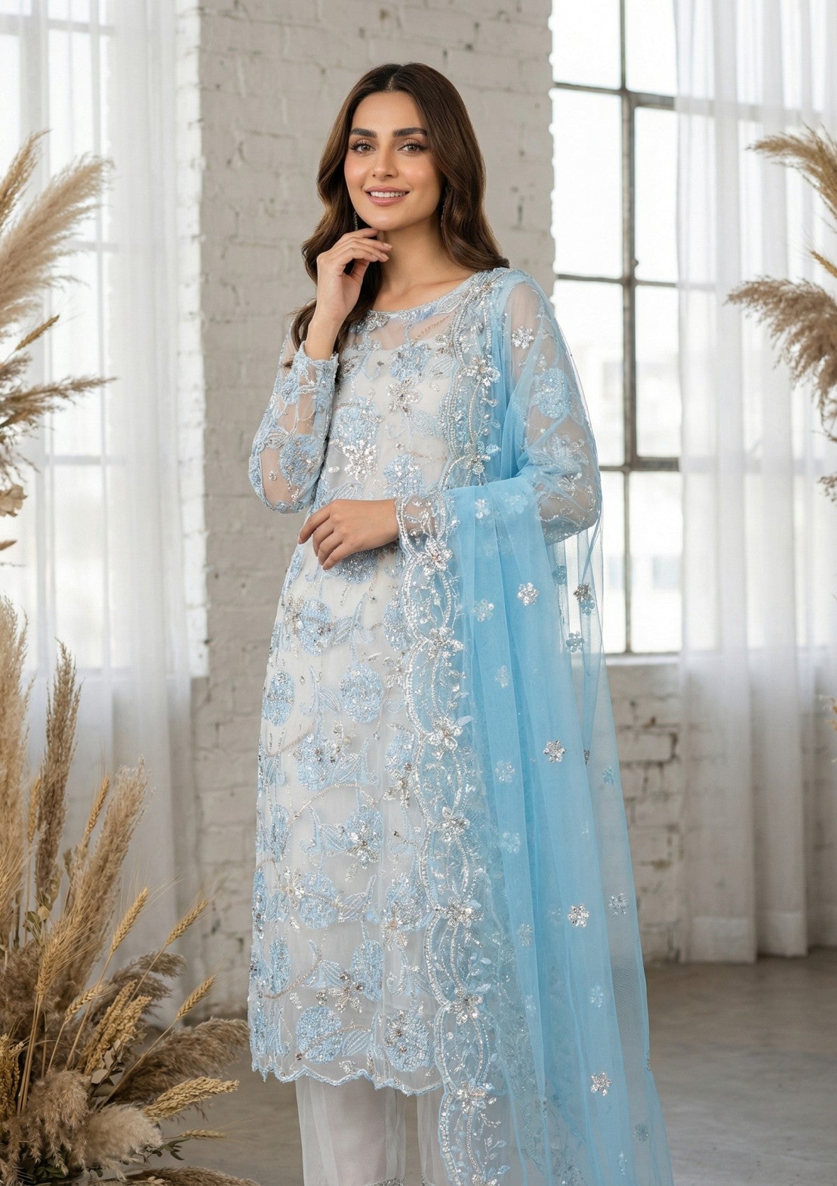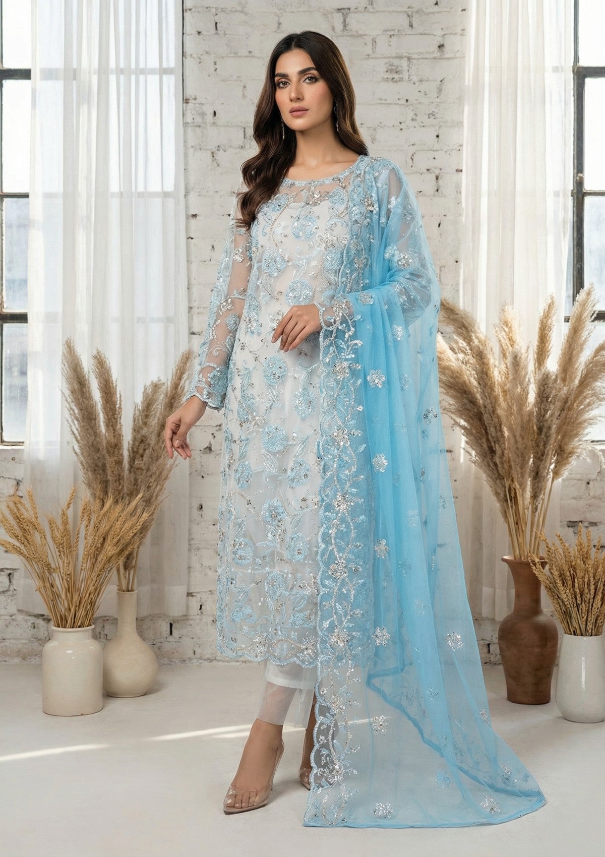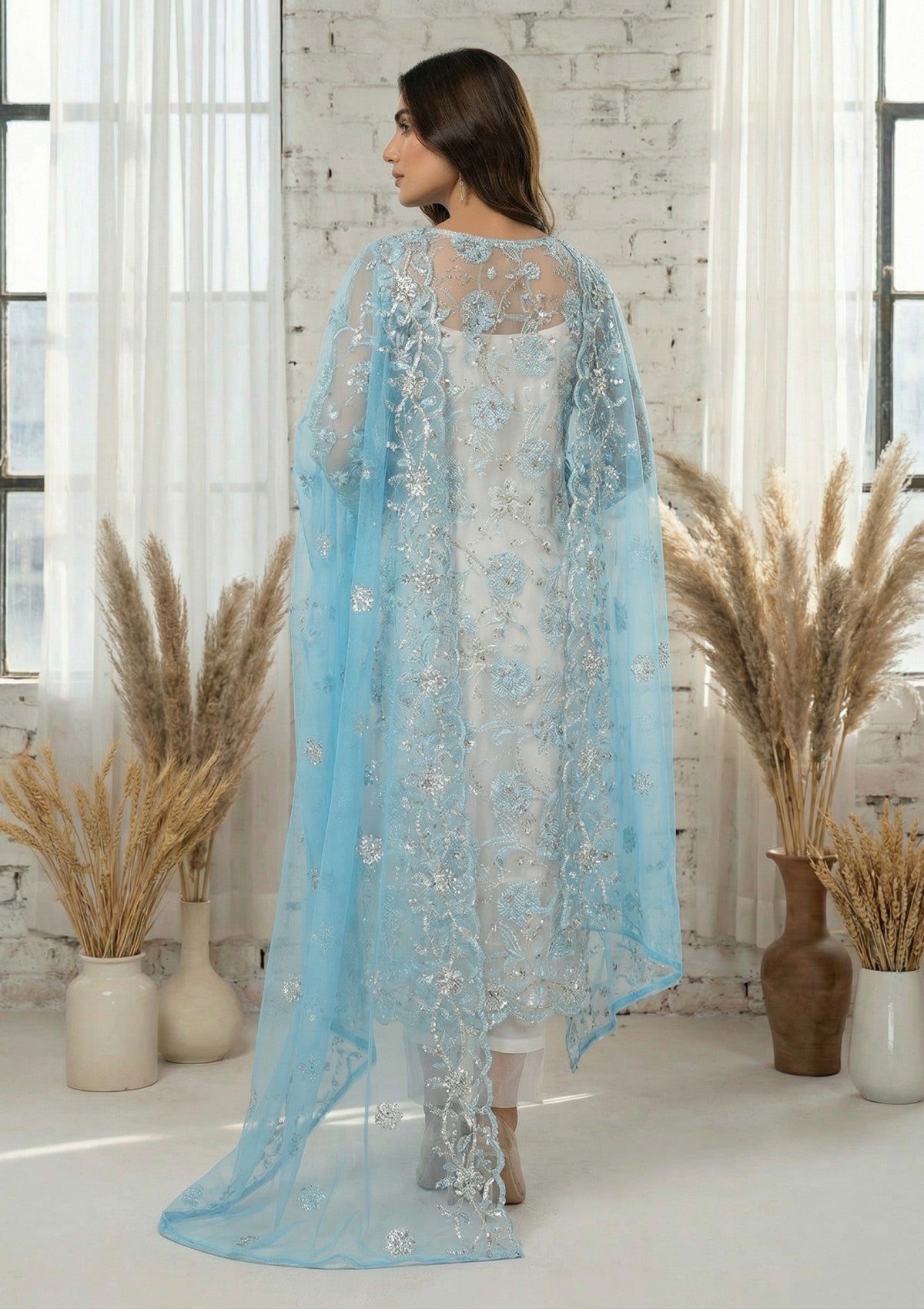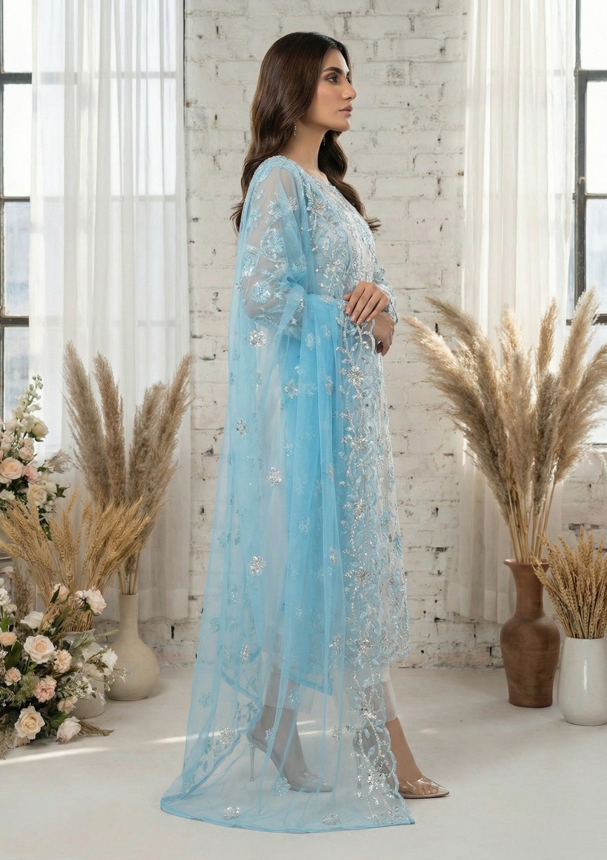 Formals Riwaj Fancy Net 2 Pcs Suit D 01 Sky Blue Lawn Collection 2026