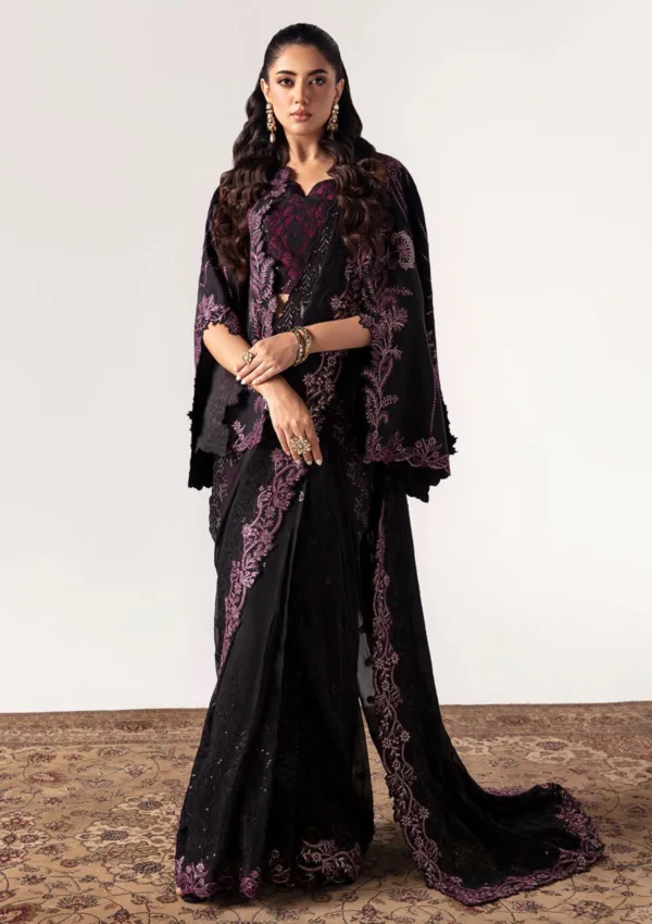 Black organza embroidered Cap + Sarhi border 14.7yrd