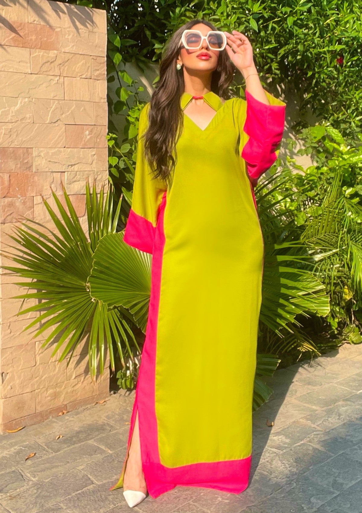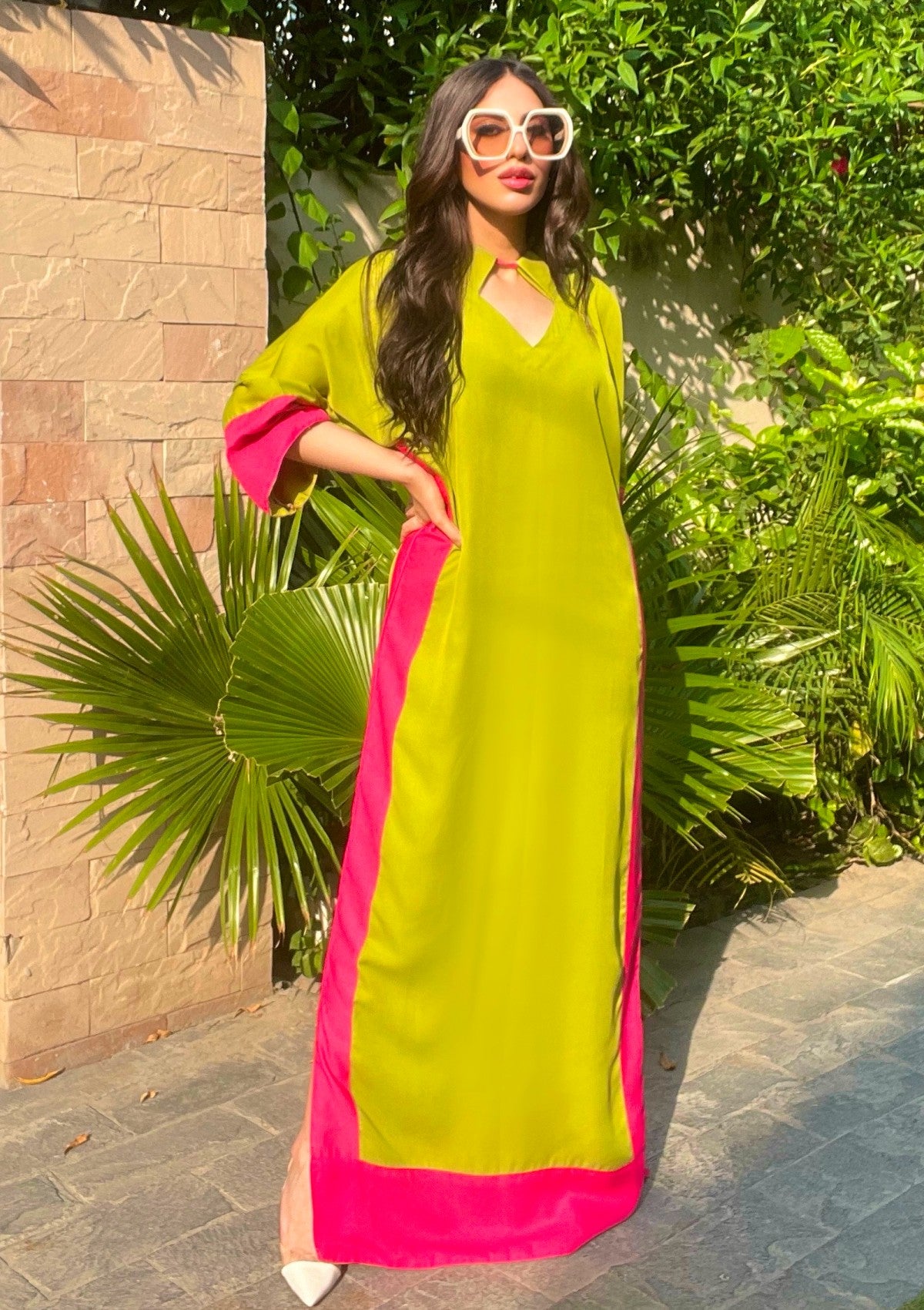 Manahils Pop of Pink kaftan Allechant