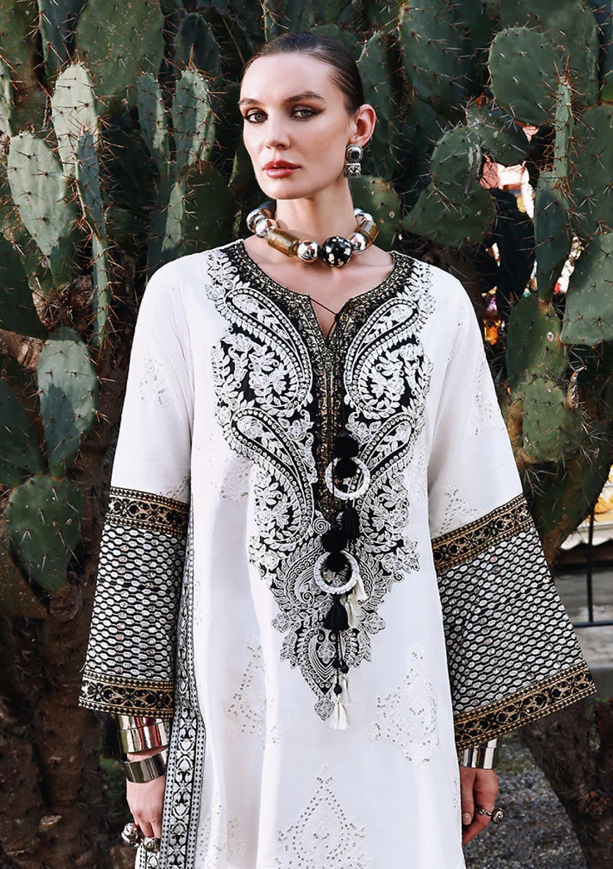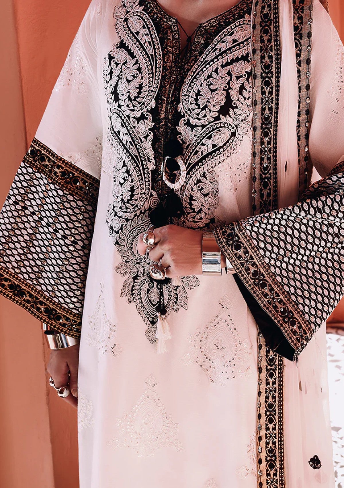 - Embroidered, sequined sleeves border (silk)