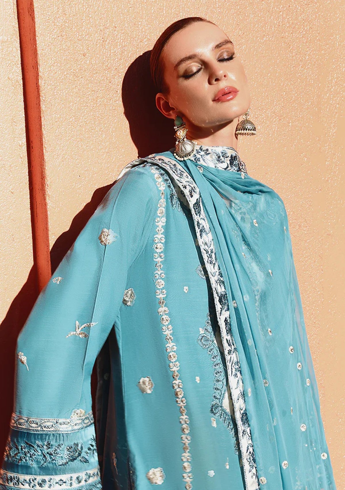 - Embroidered, sequined 4 side dupatta border (silk)