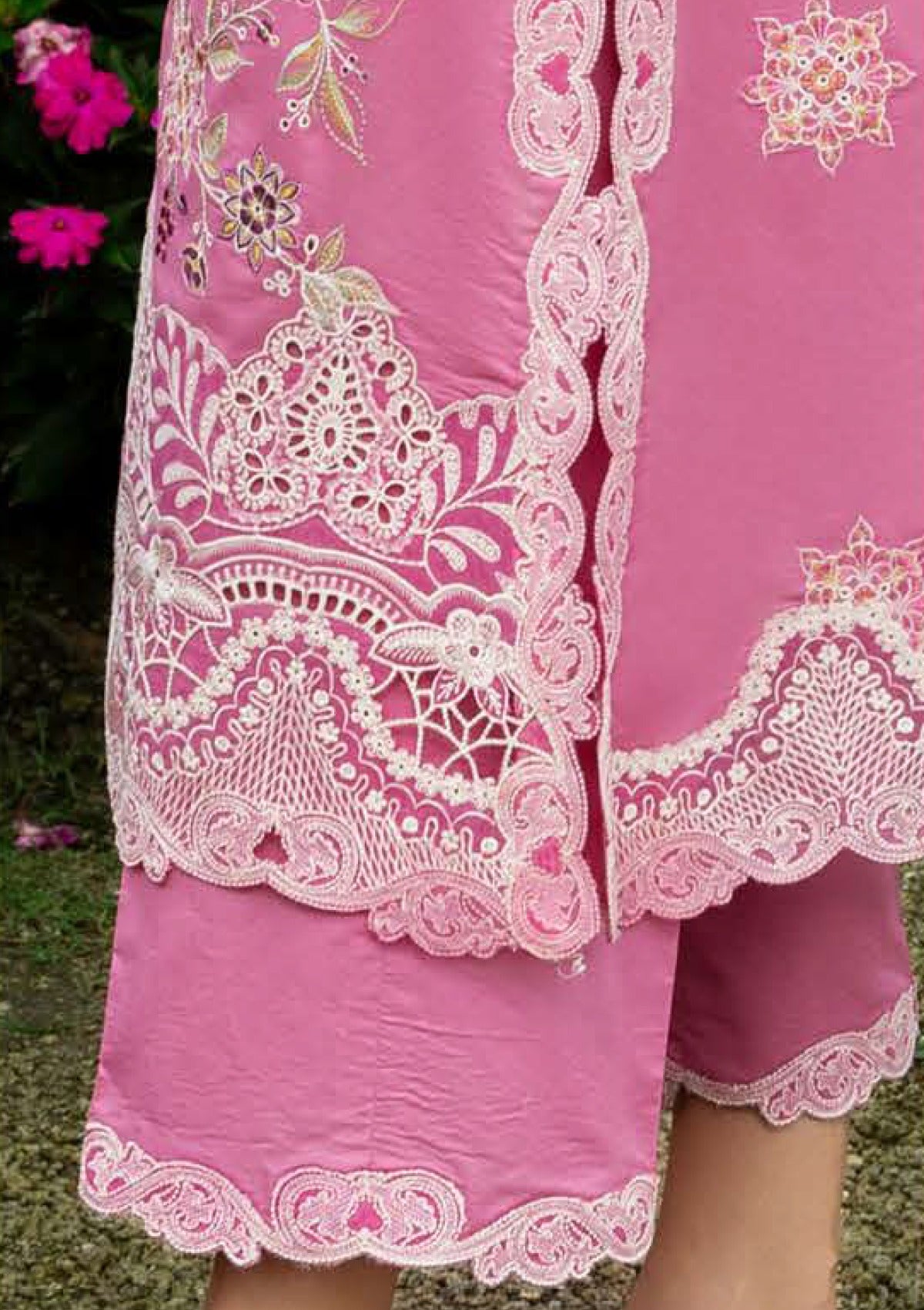 • Embroidered neckline & side slit lace (organza)
