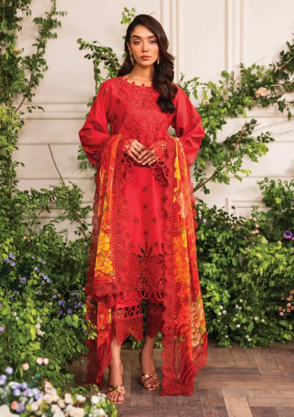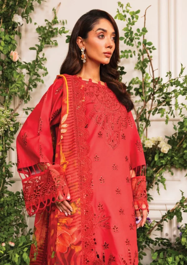 - Design: Unstitched 3-piece set with intricate embroidery and elegant digital print accents