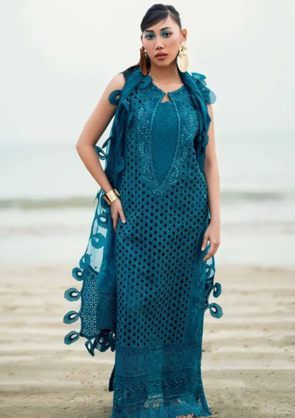 - Embroidered And Embellished Chikankari Swiss Voil Lawn Shirt With Lace Border