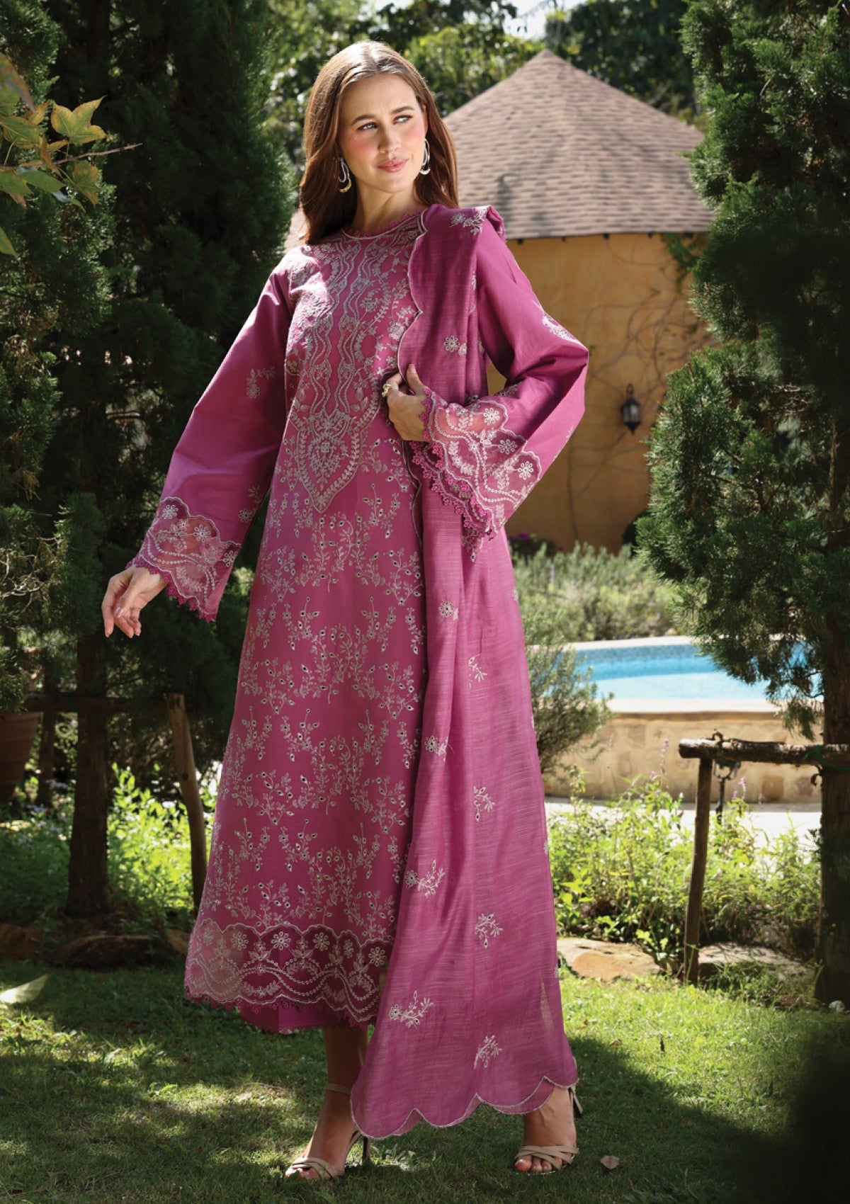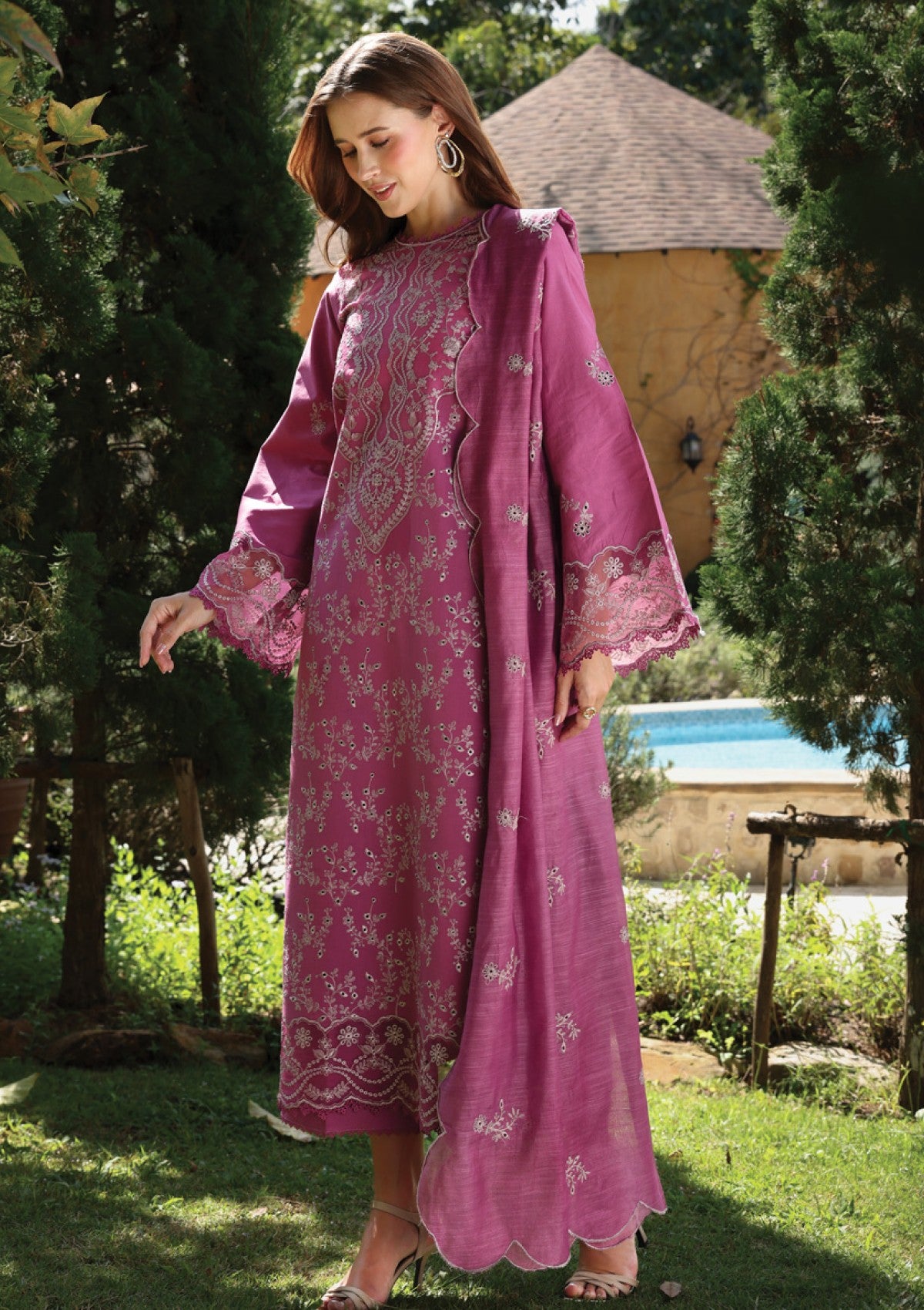 - Dupatta: Finished and accessorised to match the design shown in the images.