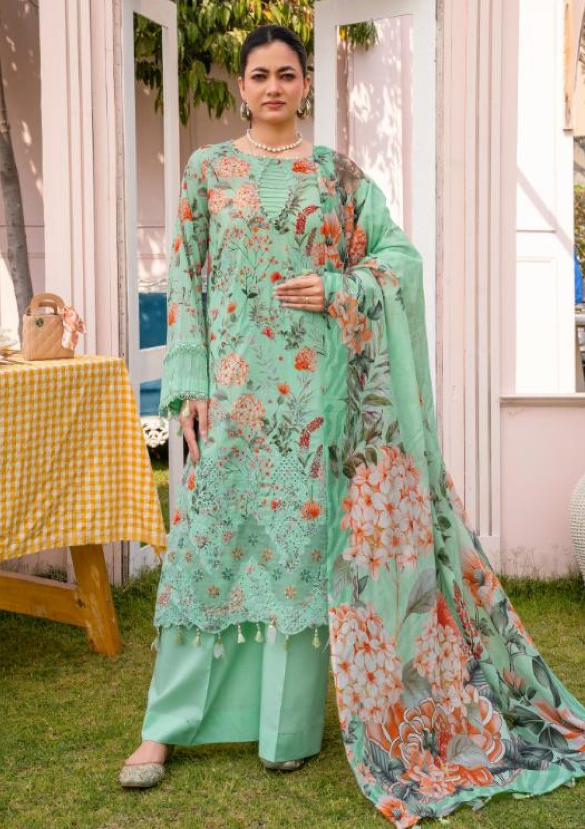 - Dupatta: Finished and accessorised to match the design shown in the images.