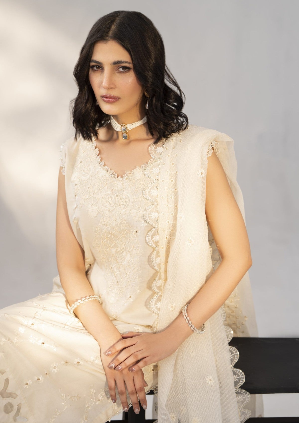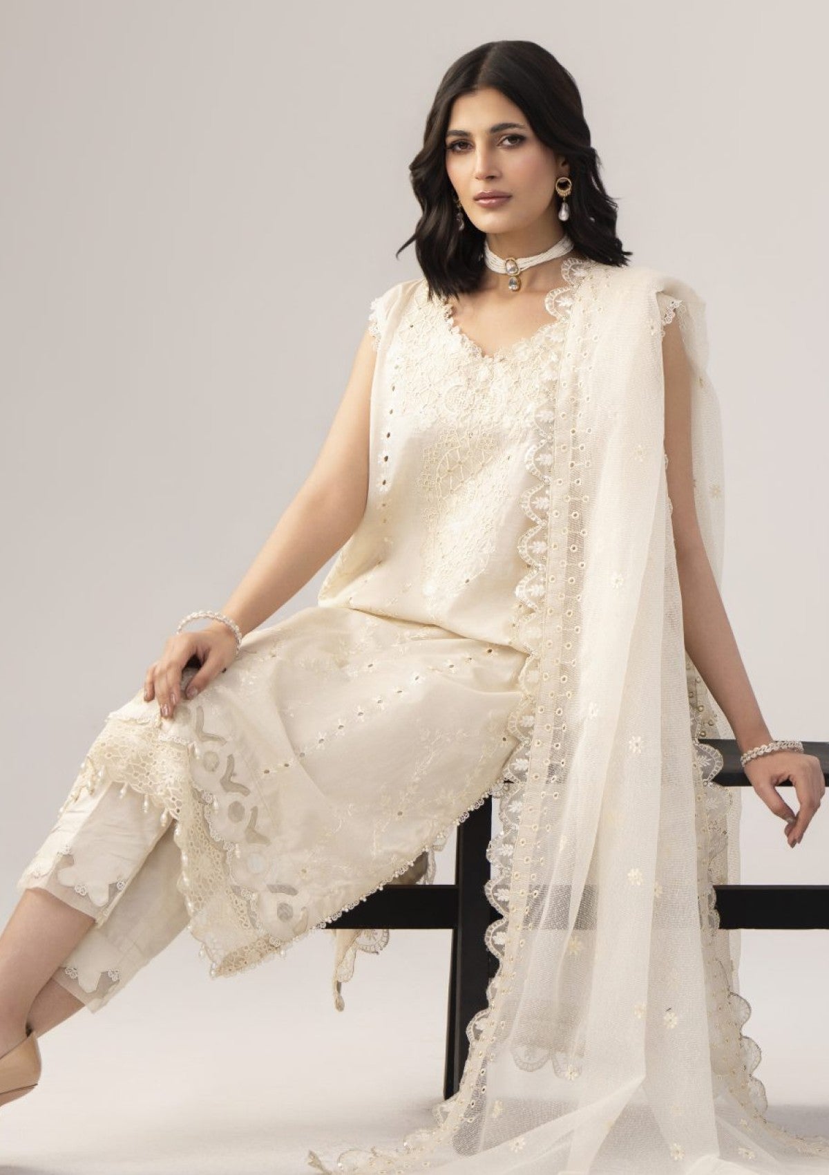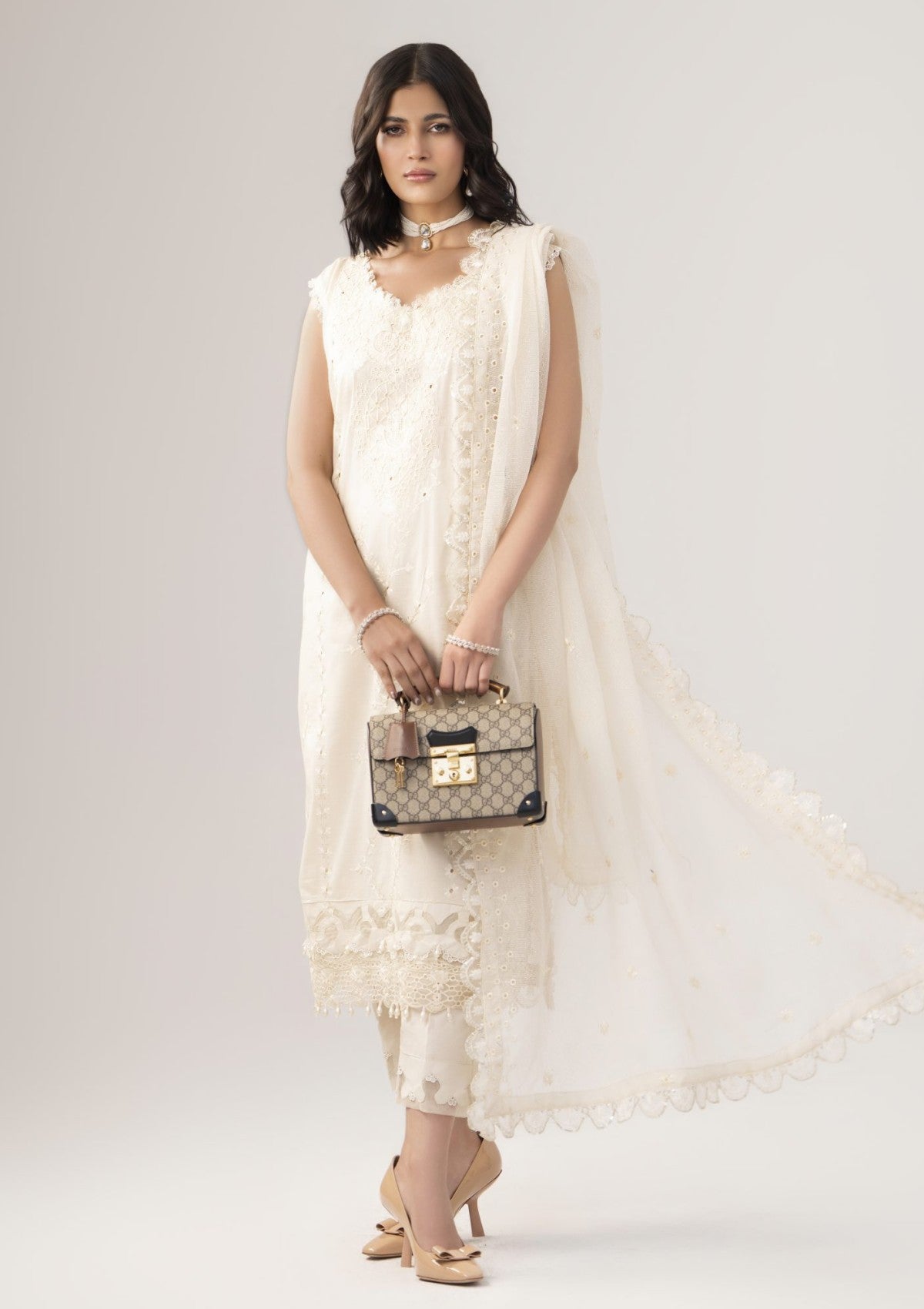 - Dupatta: Finished and accessorised to match the design shown in the images.