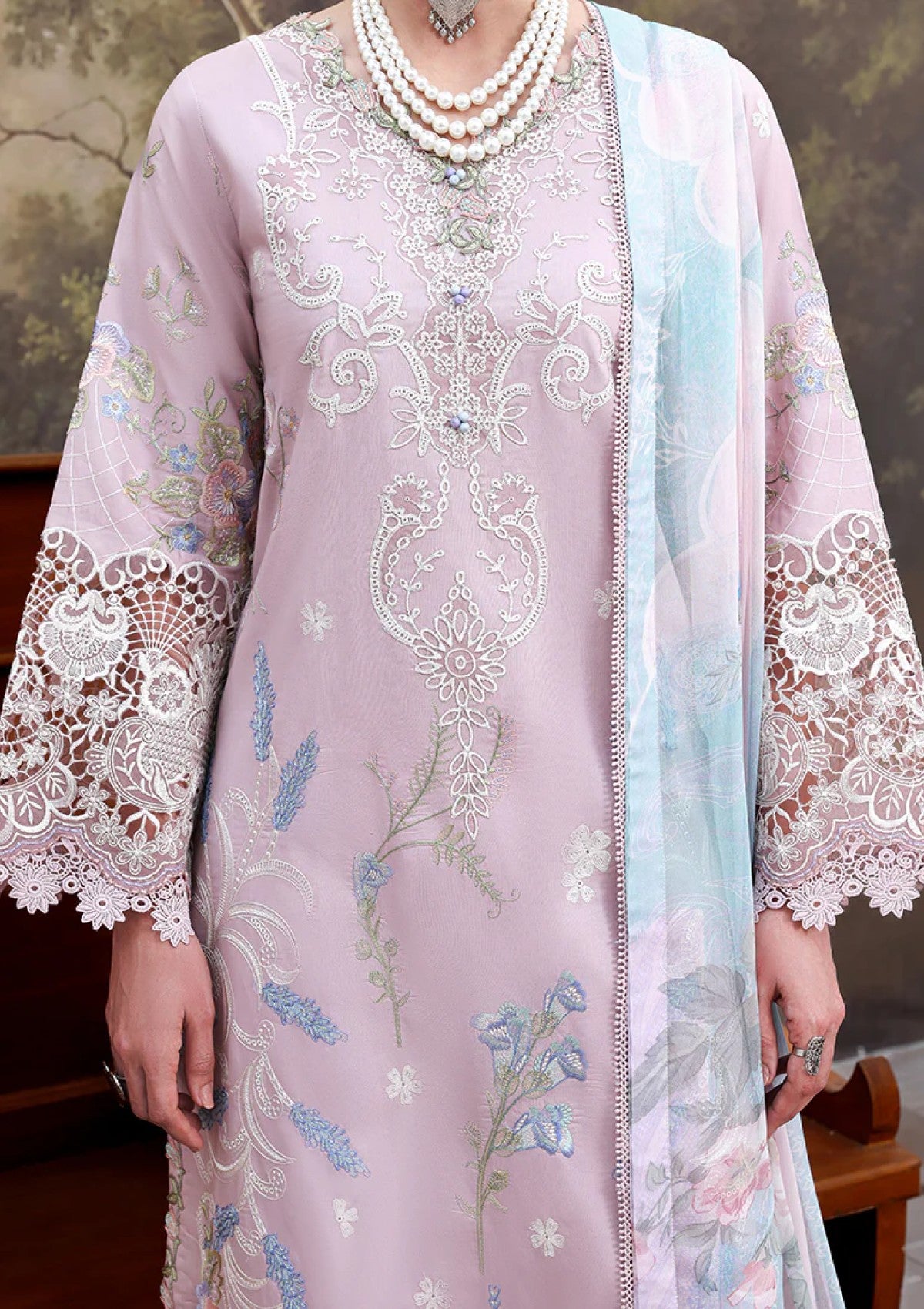 • Embroidered lawn sleeves