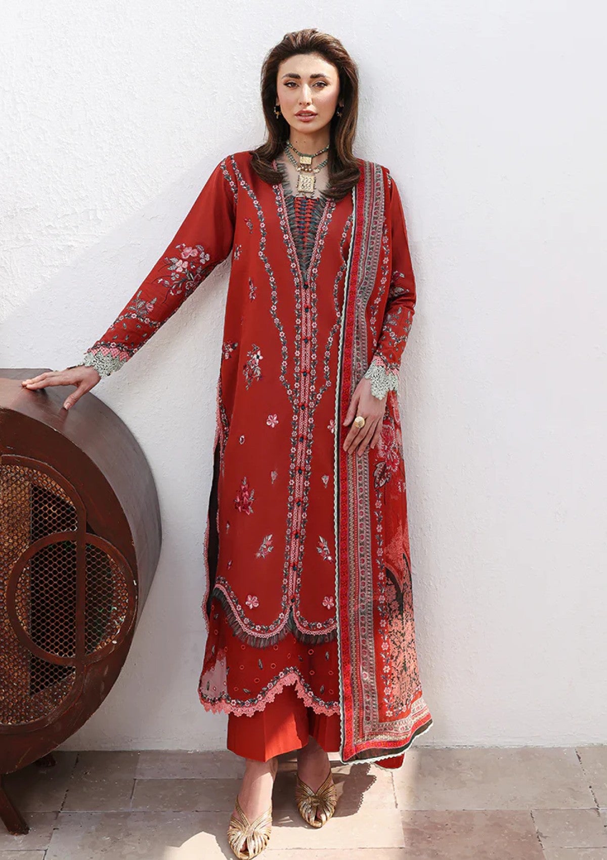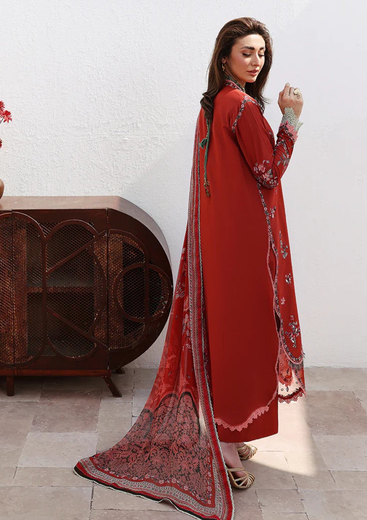 - Dupatta: Finished and accessorised to match the design shown in the images.
