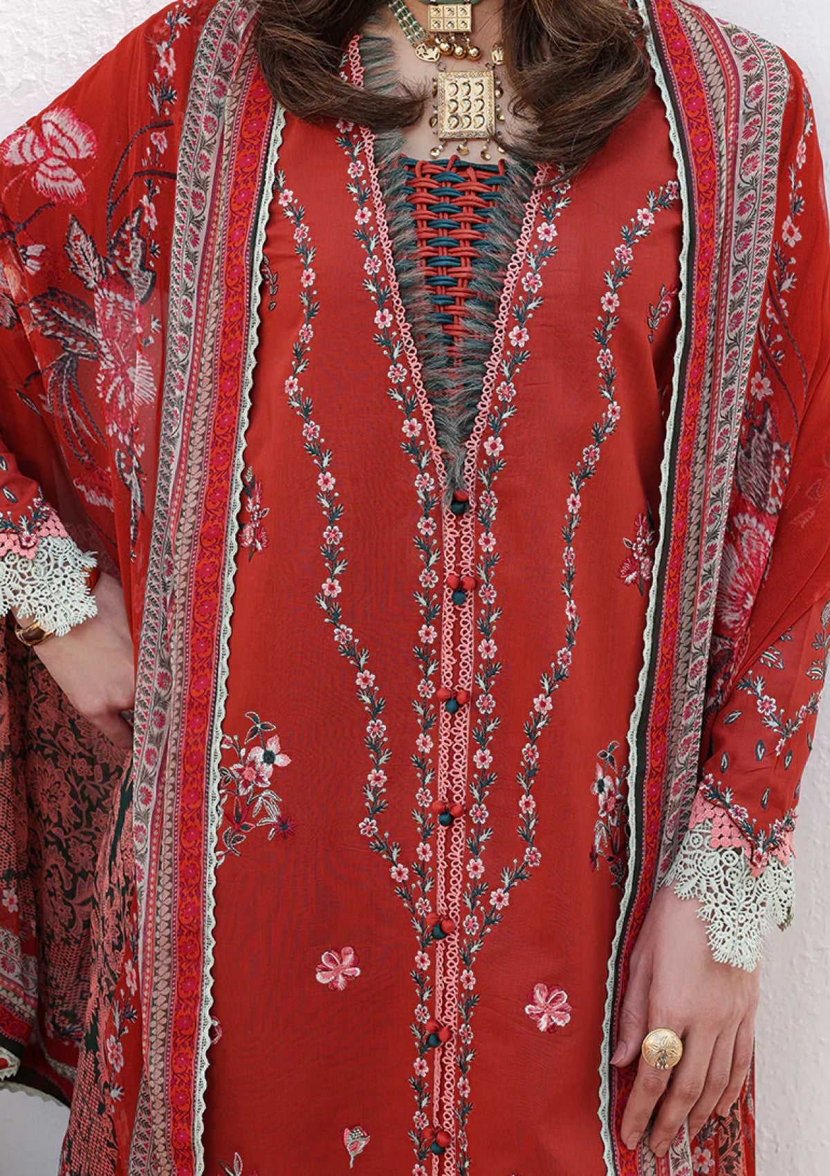 • Embroidered lawn front right panel