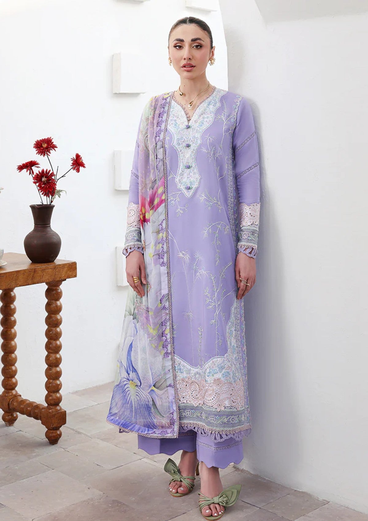 - Dupatta: Finished and accessorised to match the design shown in the images.