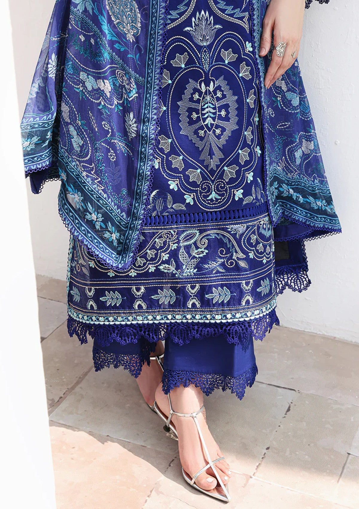 • Embroidered lawn front left panel