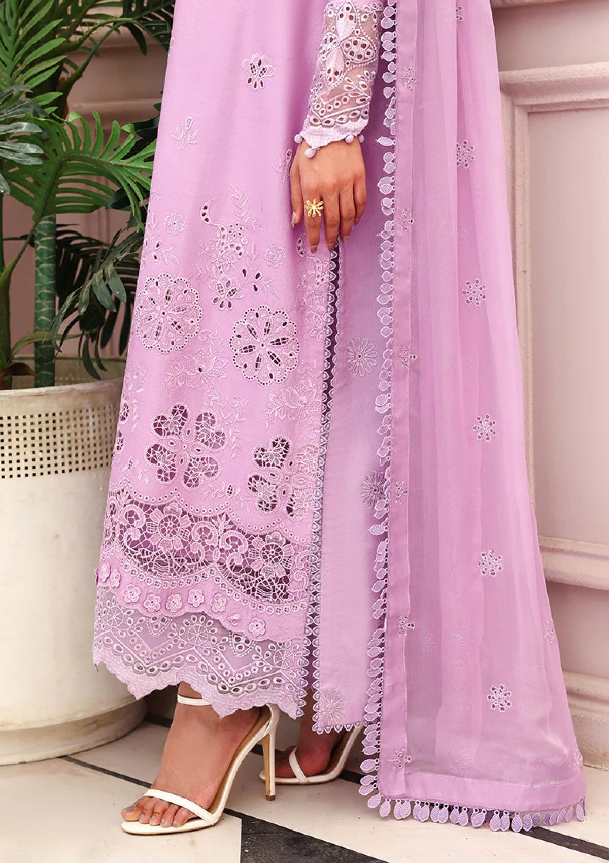 • Embroidered lawn sleeves