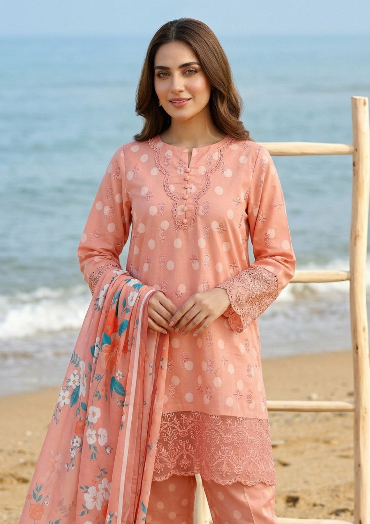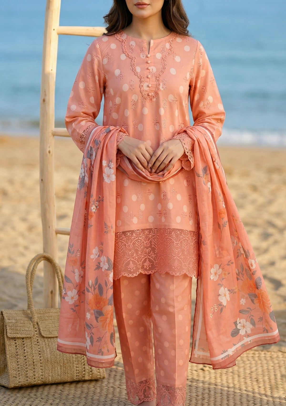 - Dupatta: Finished and accessorised to match the design shown in the images.