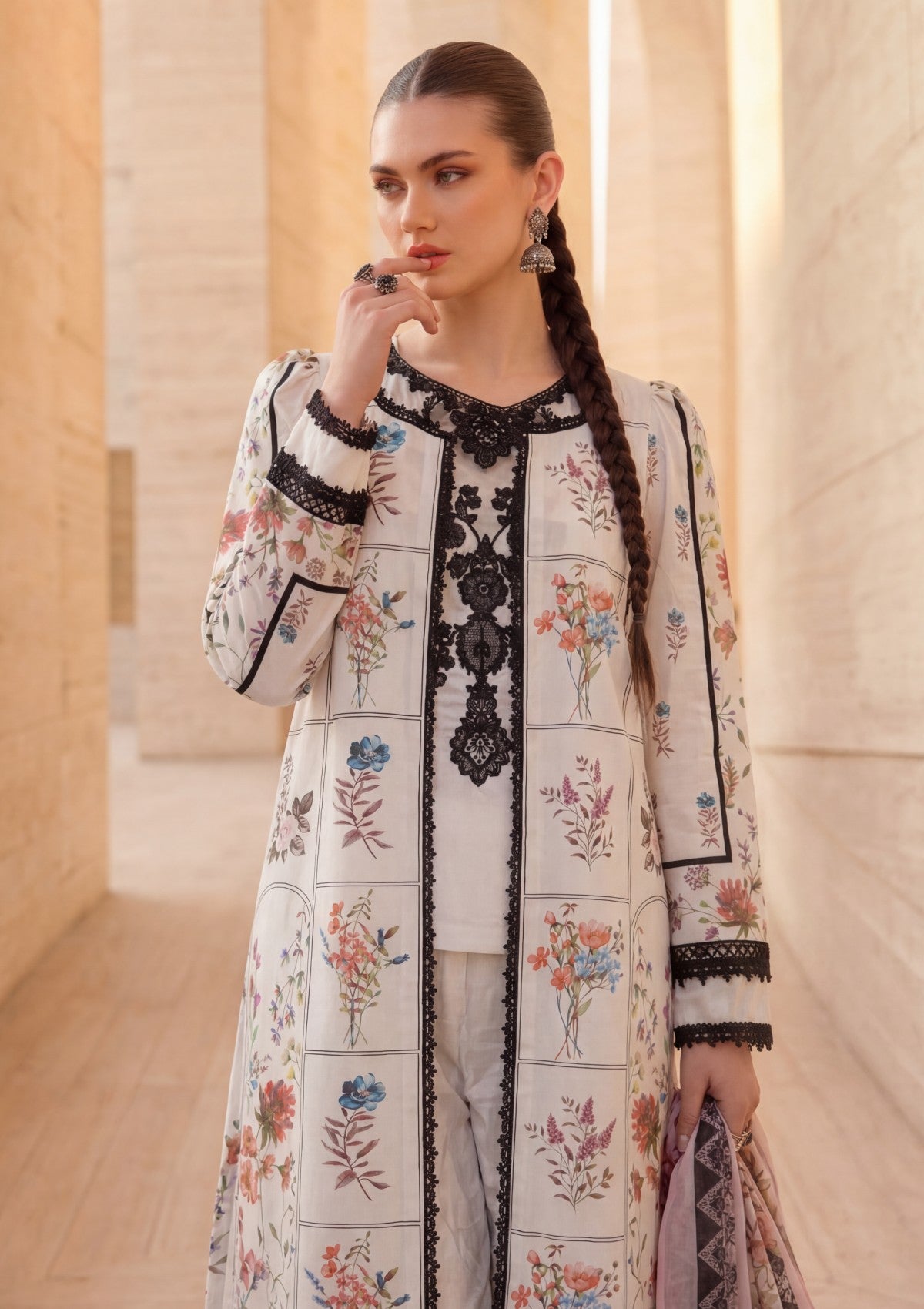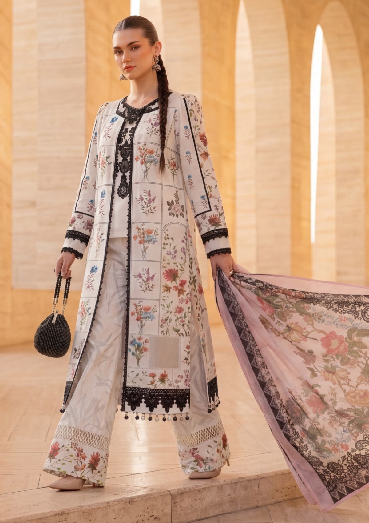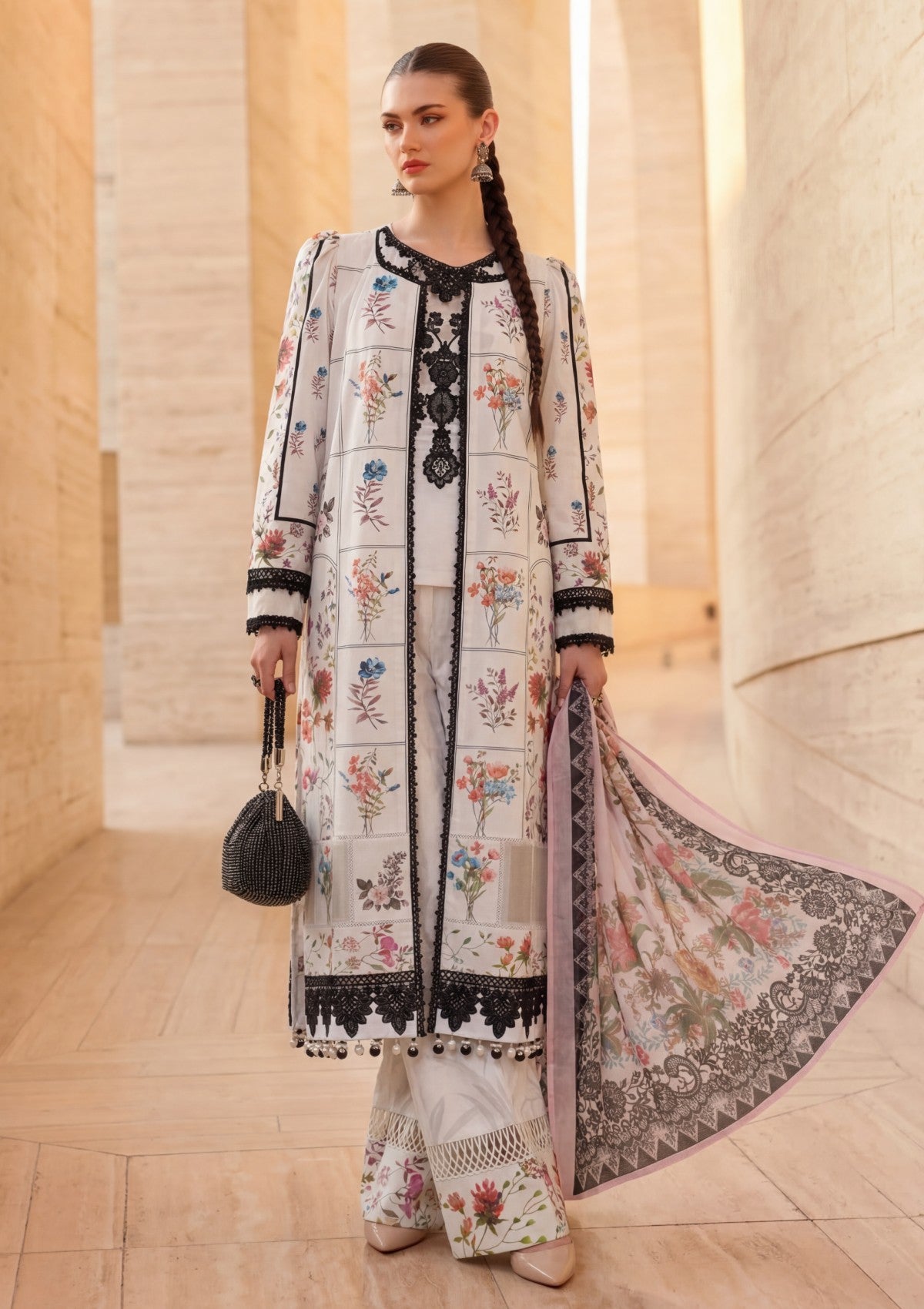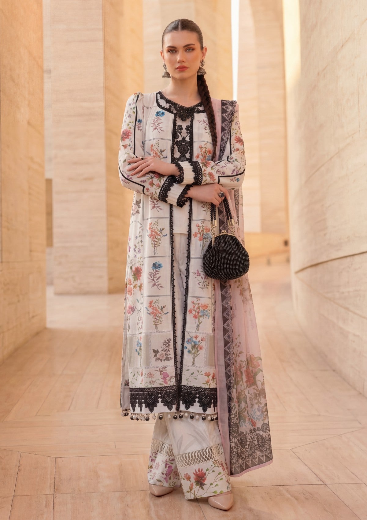 - Dupatta: Finished and accessorised to match the design shown in the images.