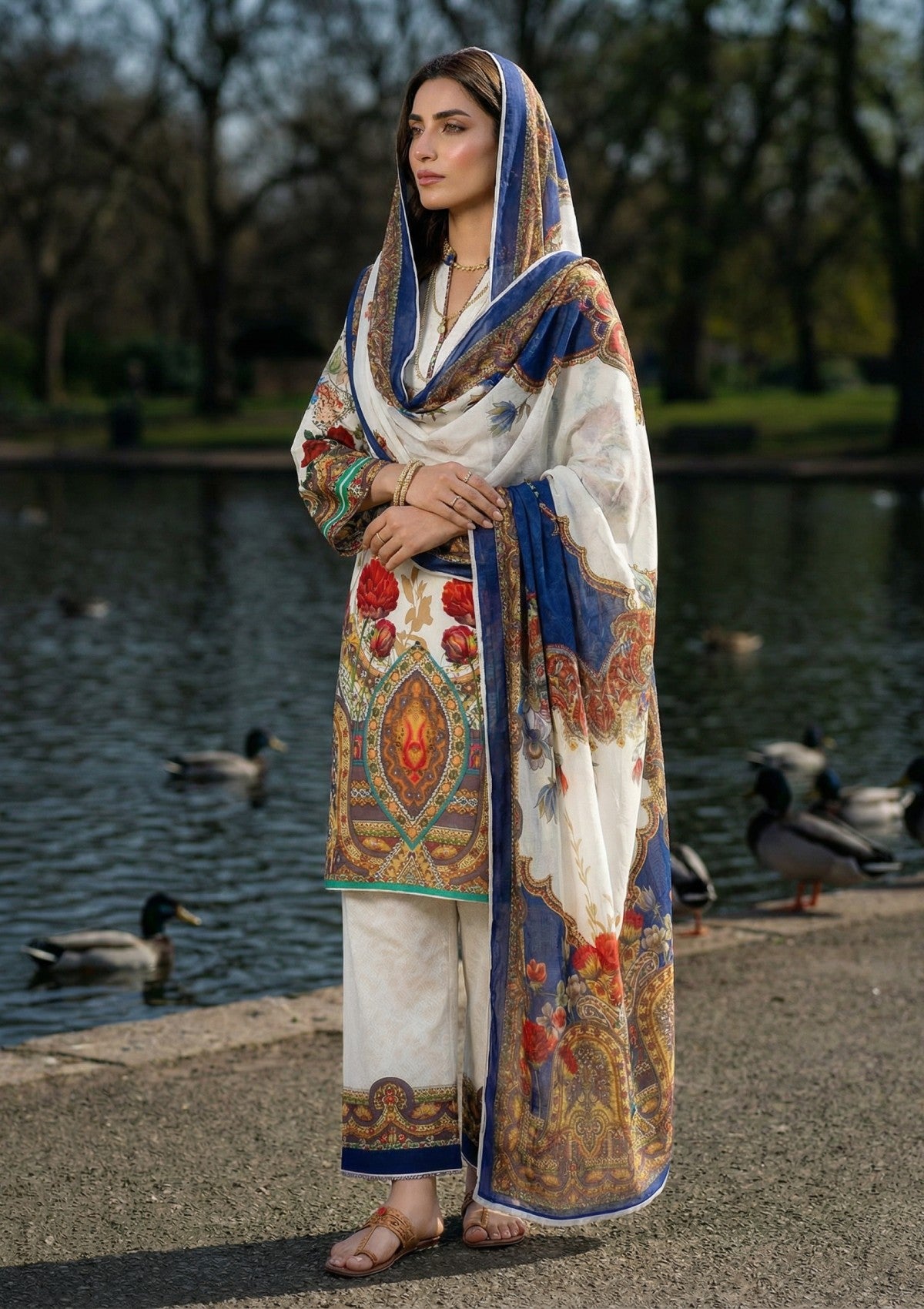 - Dupatta: Finished and accessorised to match the design shown in the images.