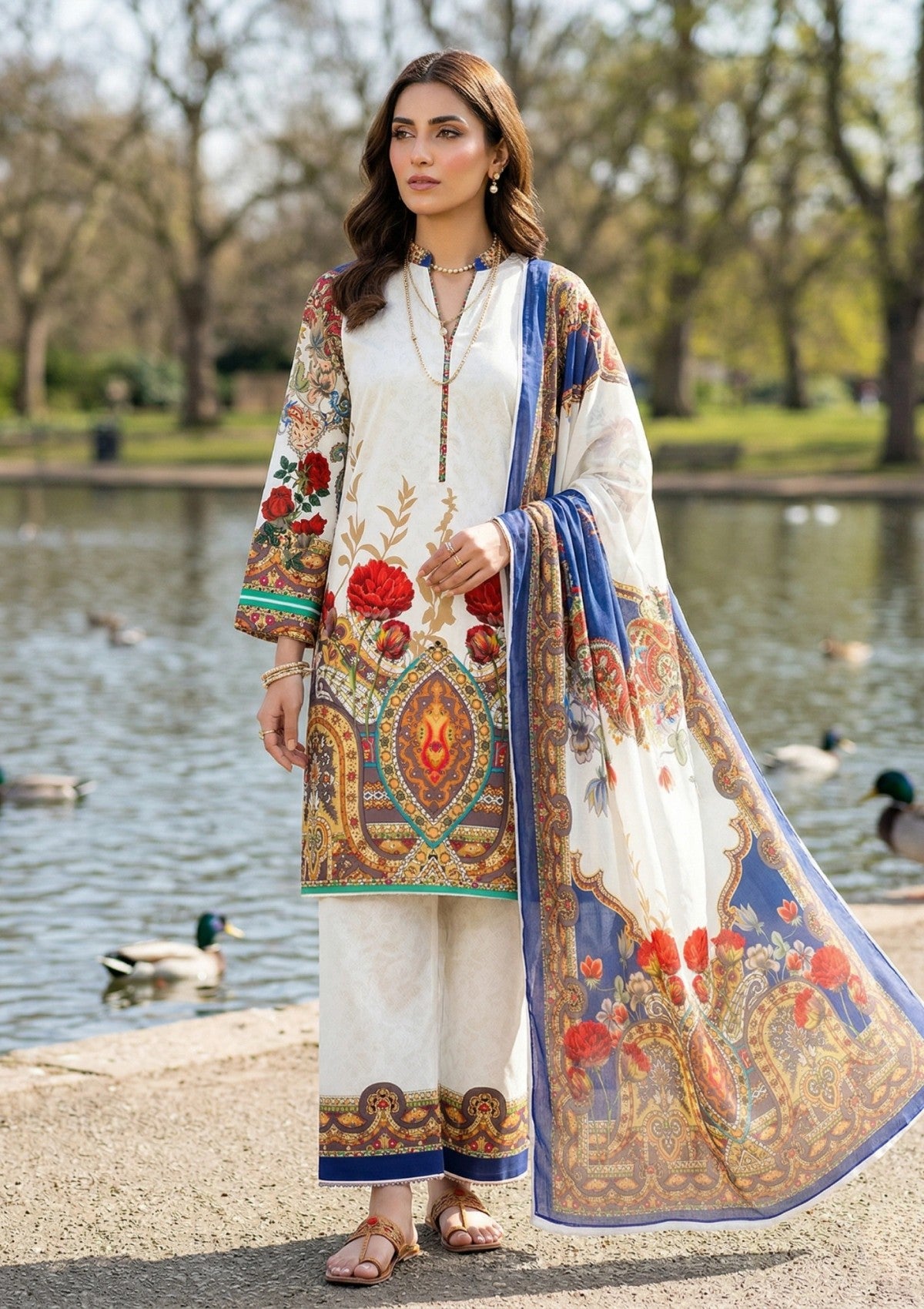 Please note that colours may appear slightly different from what is displayed on your screen. This can be due to lighting conditions during photography or variations in device display settings. Such differences are common across pakistani dresses online UK and do not indicate a defect.