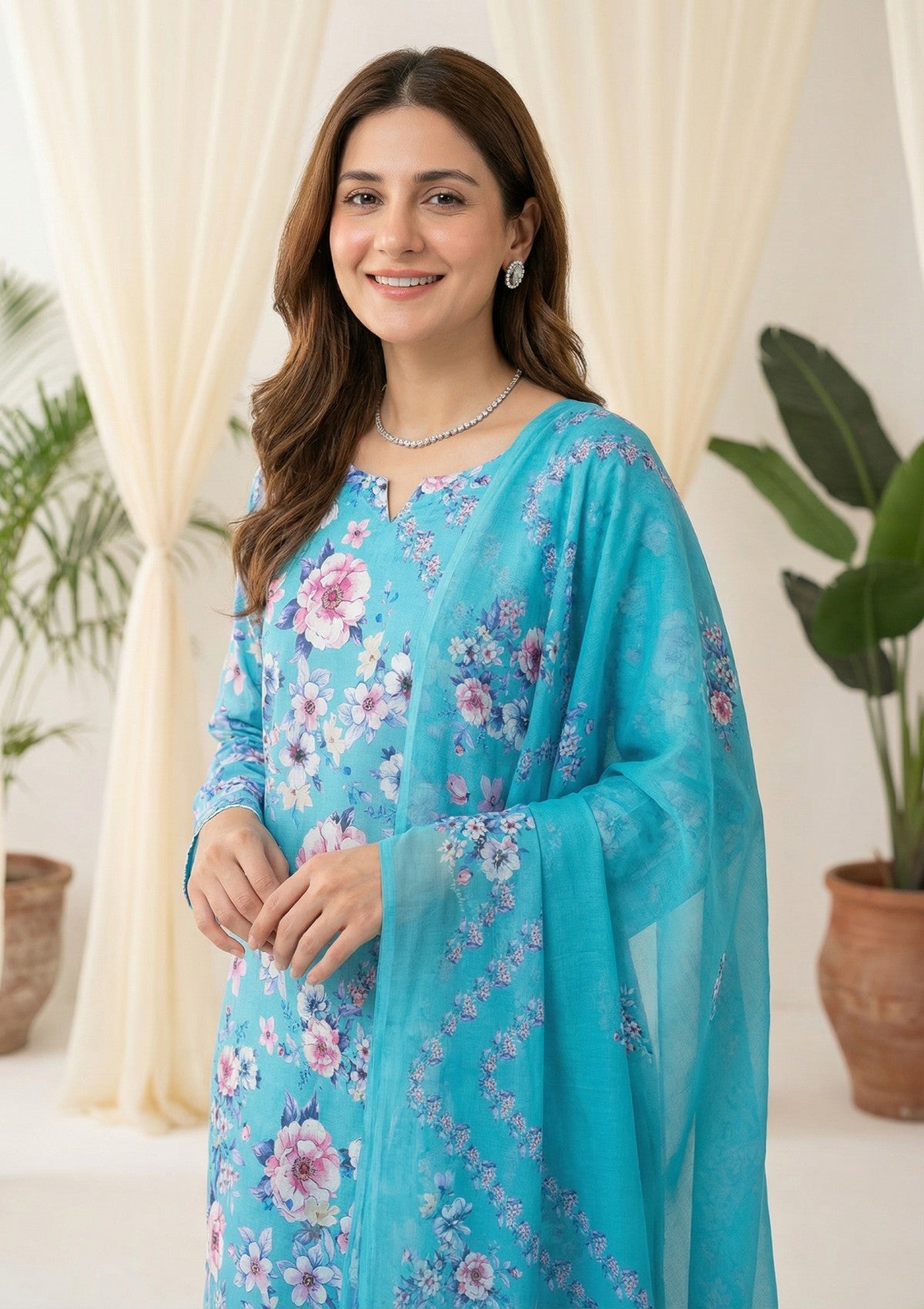 Package Includes: 3 Piece Top , Bottom & Dupatta