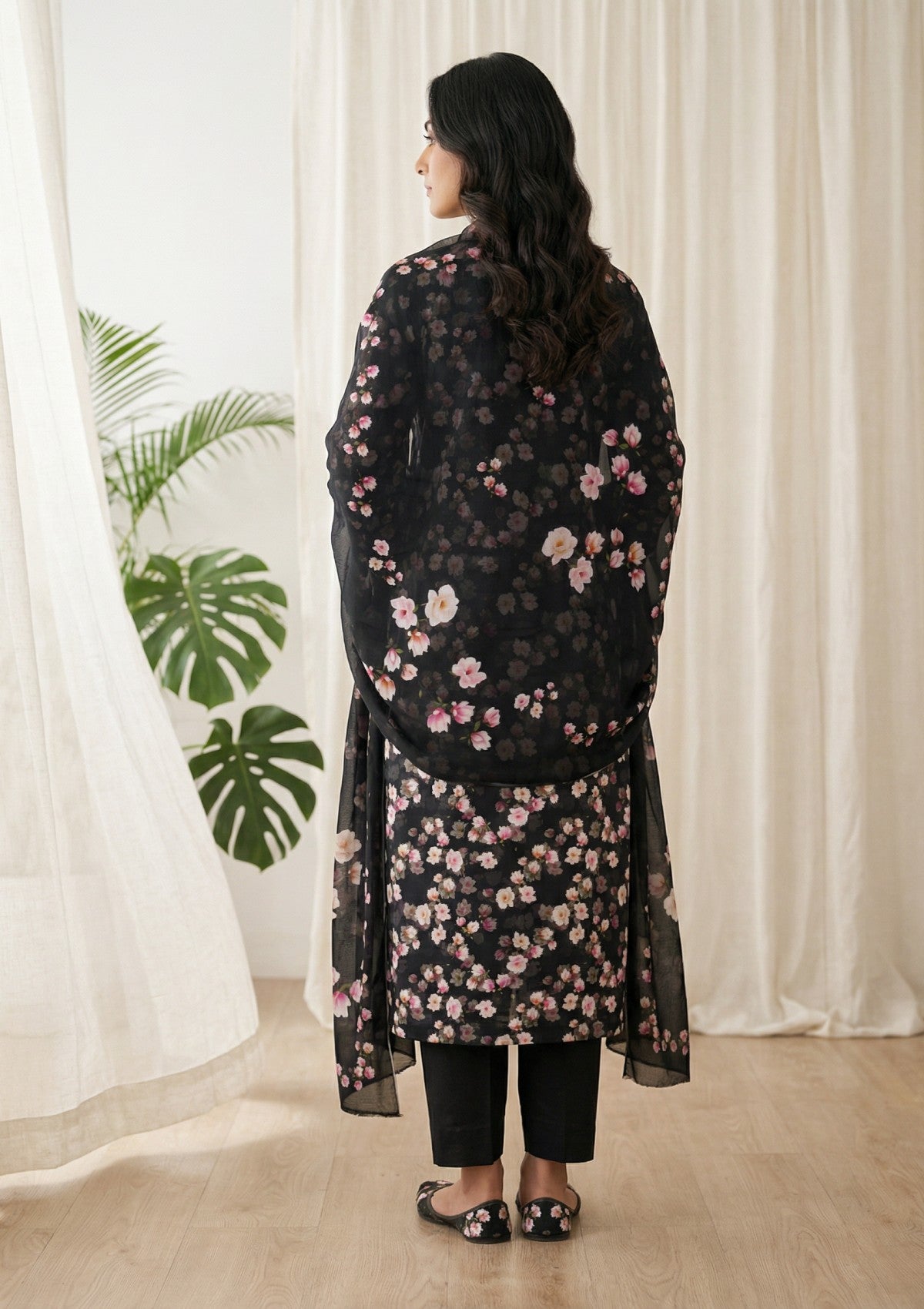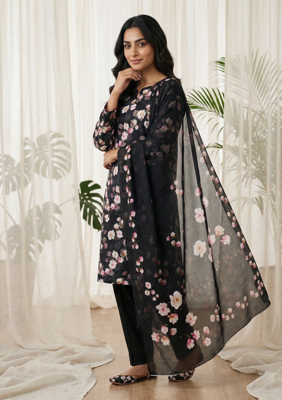 - Dupatta: Finished and accessorised to match the design shown in the images.