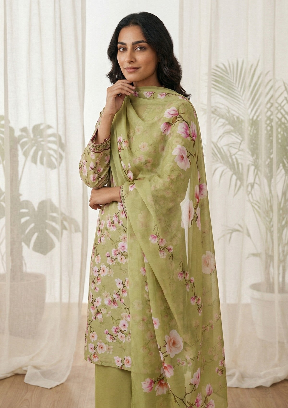 • Sleeves: Styled as shown, subject to fabric availability. Sleeveless outfits will include separate stitched sleeves where applicable.
