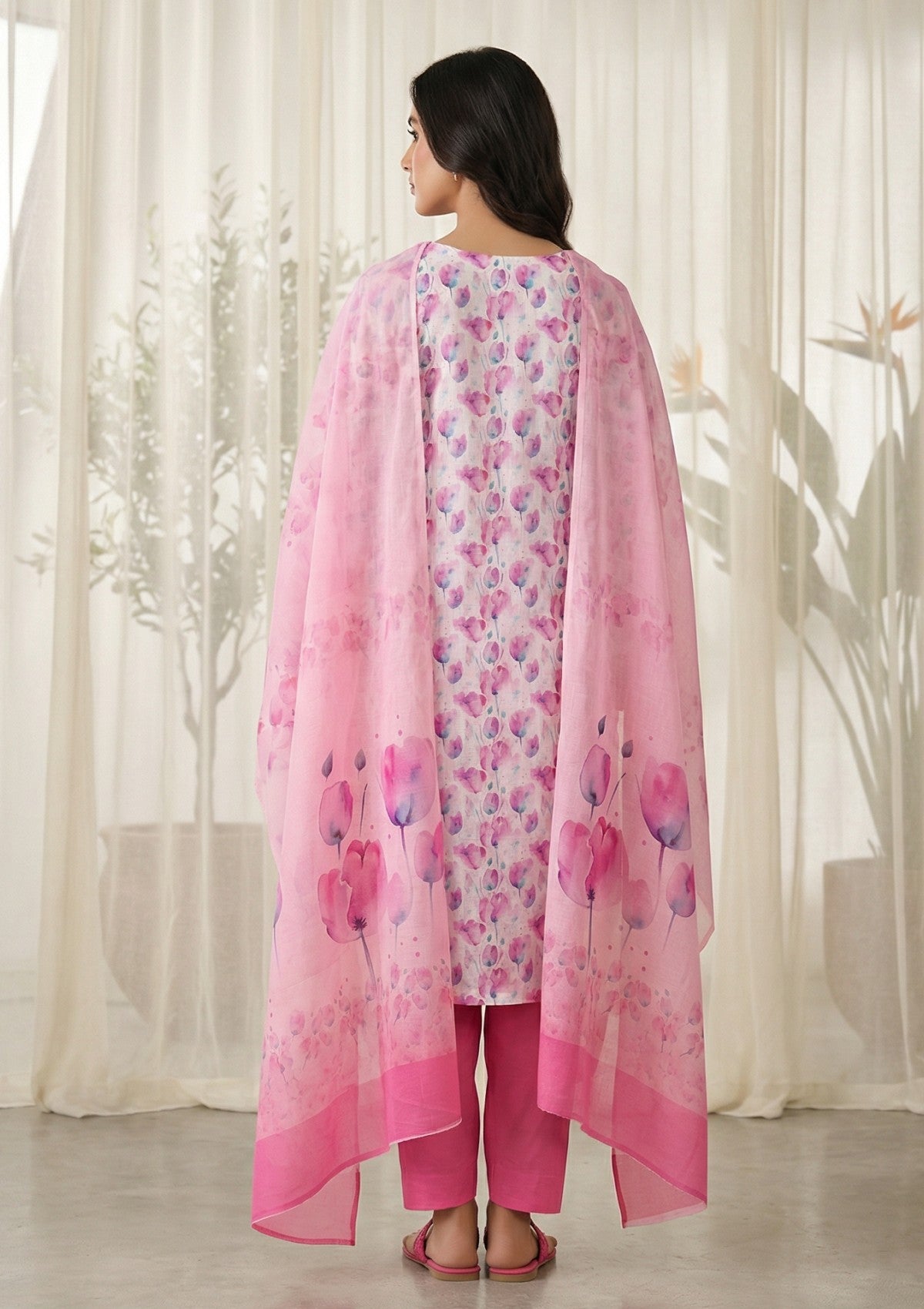 - Dupatta: Finished and accessorised to match the design shown in the images.