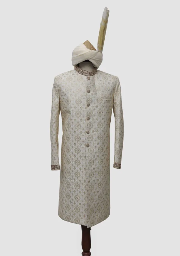 Package Includes: 3 Piece Sherwani, Turban, Khussa