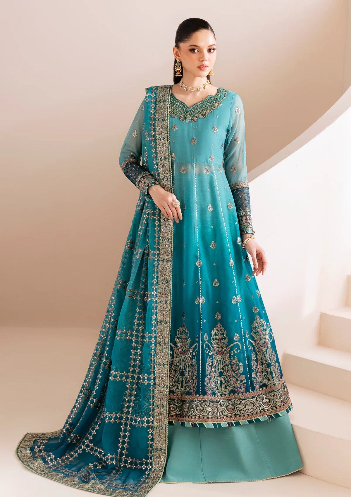 - Embroidered Shaded Chiffon Dupatta