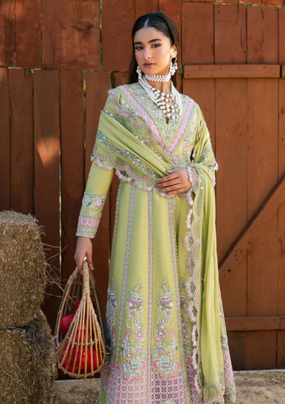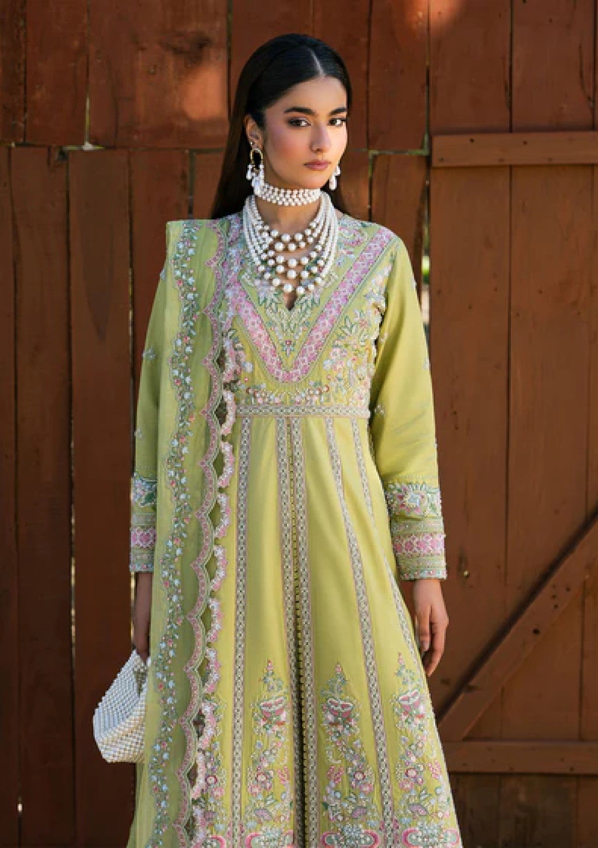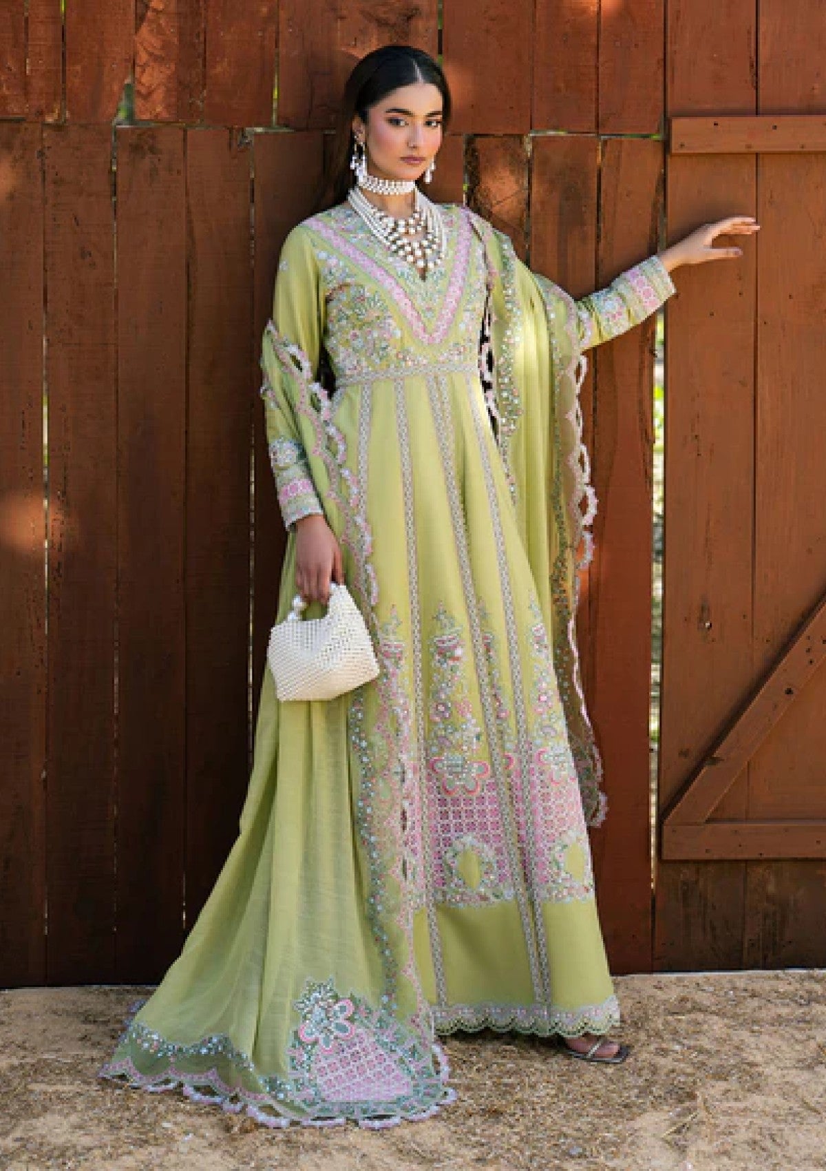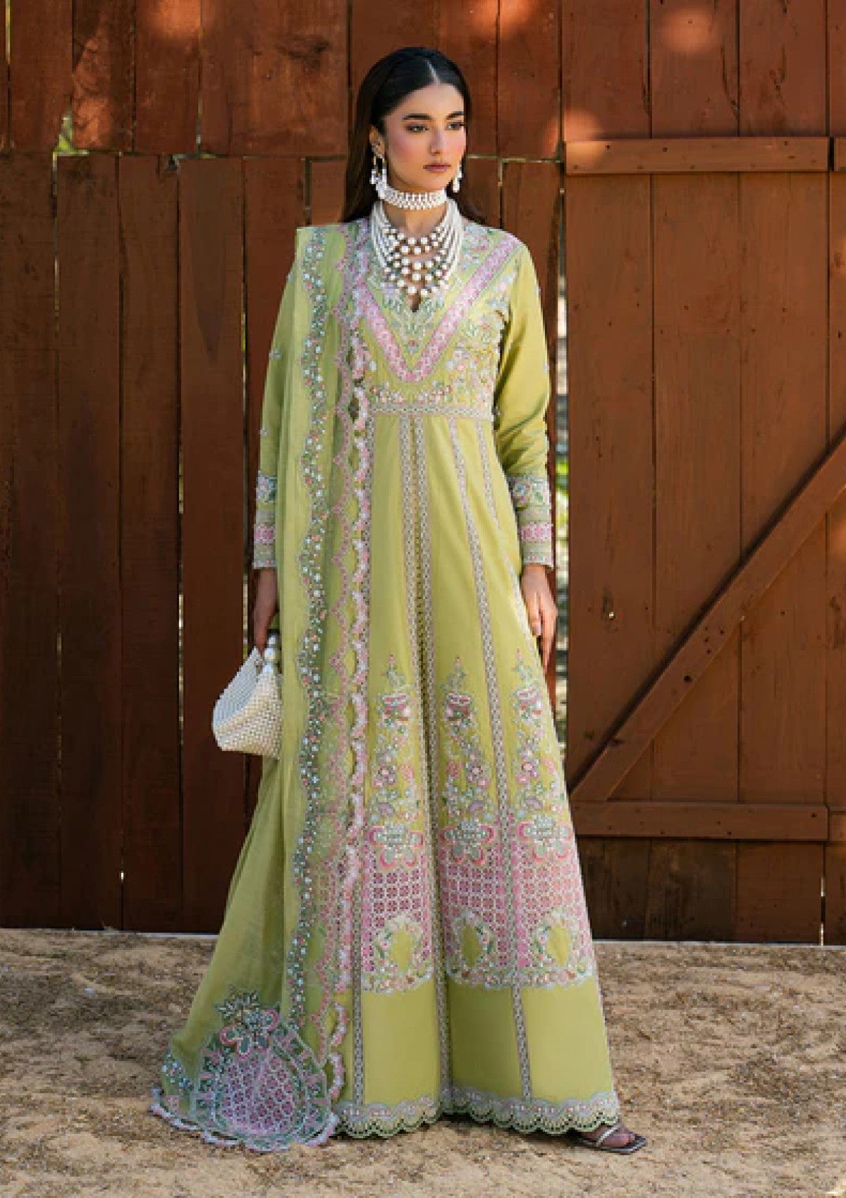 Step into refined grace with MOSS. An embroidered lawn pishwas featuring exquisite sleeve work and organza accents, complemented by classic lawn trousers and a flowing embroidered dupatta — crafted for statement celebrations.