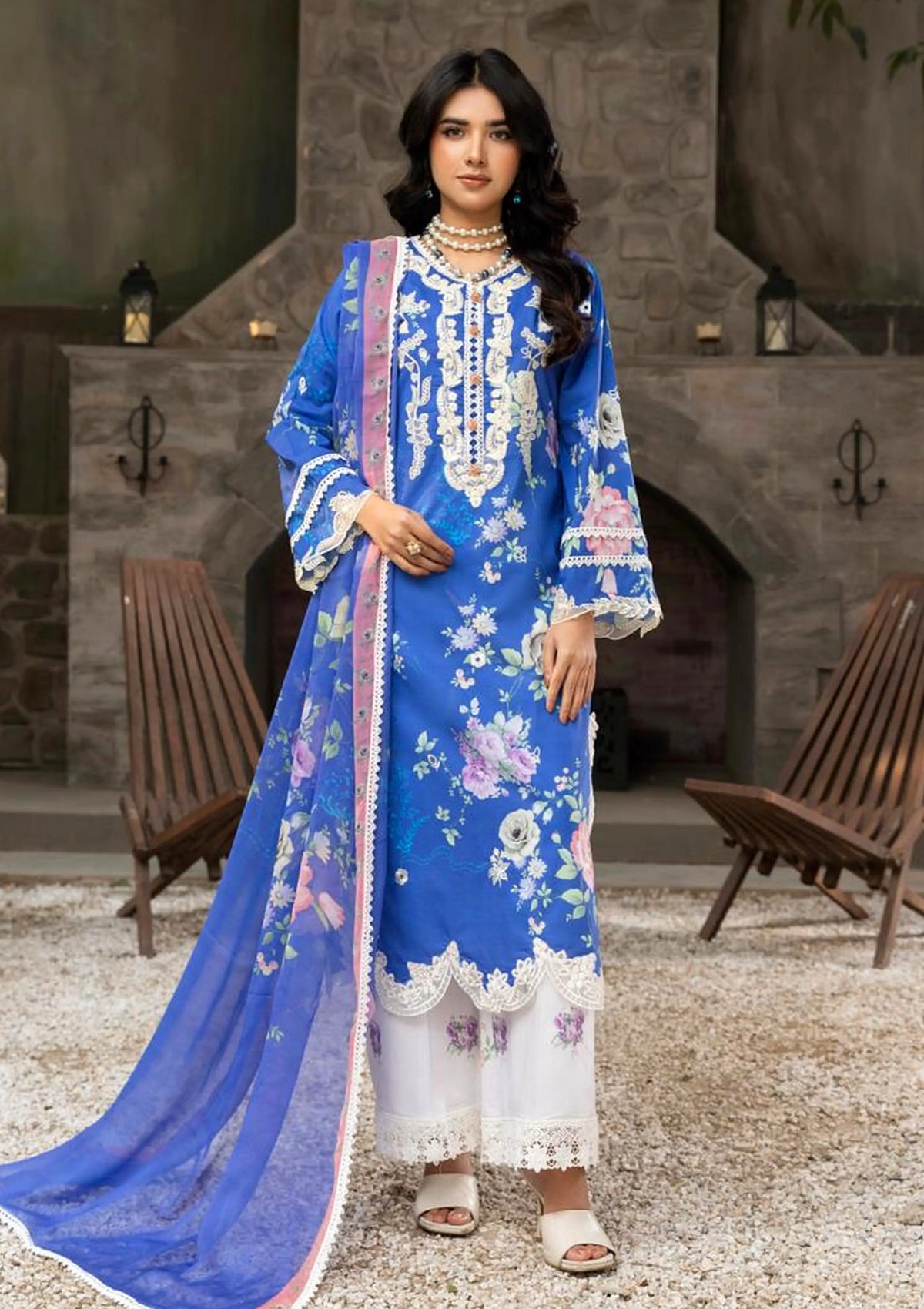 - Printed + Embroidered Lawn Front Fabric